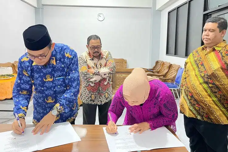 NEWSKABAR12, KARANGANYAR – Universitas Muhammadiyah Karanganyar (UMUKA SOLO) siap melakukan kerja-kerja bersama lintas agama dalam isu lingkungan, menyusul penandatanganan nota kesepahaman bersama atau memorandum of understanding (MoU) antara kampus dengan Eco Bhinneka Muhammadiyah. Penandatanganan MoU dilaksanakan secara sederhana di Ruang Rektor Kampus UMUKA, Selasa (1/10).