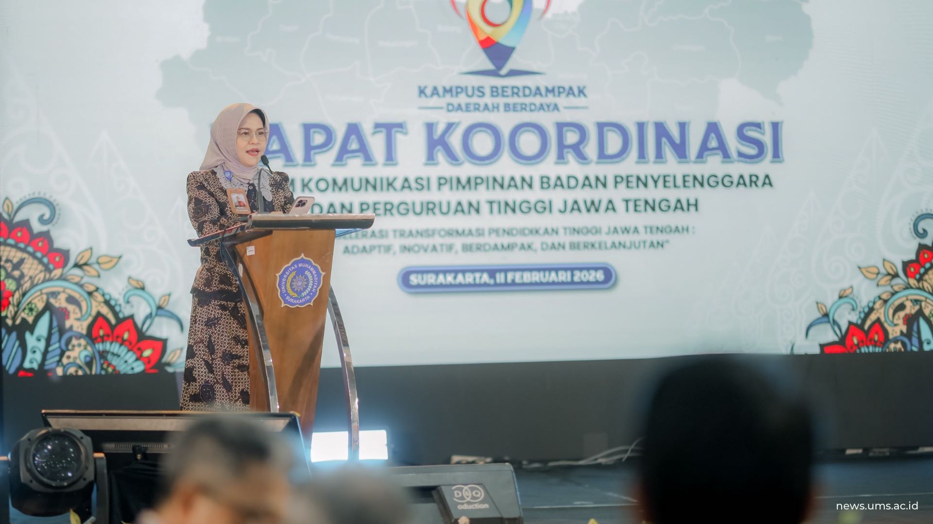 muhammadiyahkaranganyar.or.id, SURAKARTA – Kepala Lembaga Layanan Pendidikan Tinggi (LLDIKTI) Wilayah VI Jawa Tengah, Prof. Dr. Ir. Aisyah Endah Palupi, M.Pd., secara resmi membuka Rapat Koordinasi bertajuk : “Akselerasi Transformasi Pendidikan Tinggi Jawa Tengah: Adaptif, Inovatif, Berdampak, dan Berkelanjutan. Kegiatan tersebut menjadi ruang strategis”, konsolidasi antara LLDIKTI VI, pimpinan perguruan tinggi swasta (PTS), serta badan penyelenggara untuk memperkuat arah transformasi pendidikan tinggi di Jawa Tengah.