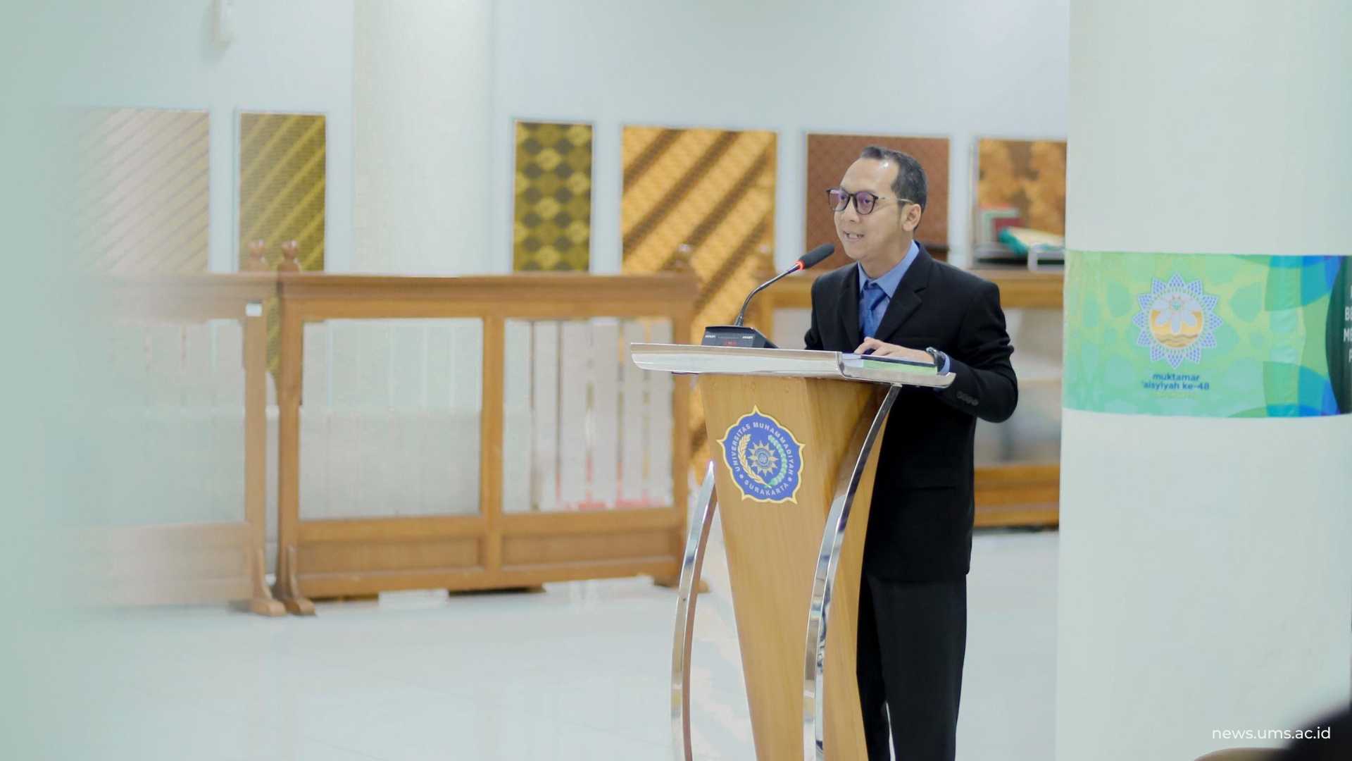 Rektor UMS, Prof. Dr. Harun Joko Prayitno, M.Hum., dalam sambutannya menyampaikan apresiasi atas capaian akademik promovendus sekaligus menekankan pentingnya kebermanfaatan ilmu. Ia berharap temuan disertasi tersebut tidak berhenti sebagai konsep teoritis, melainkan terus dikembangkan dan diimplementasikan secara nyata.