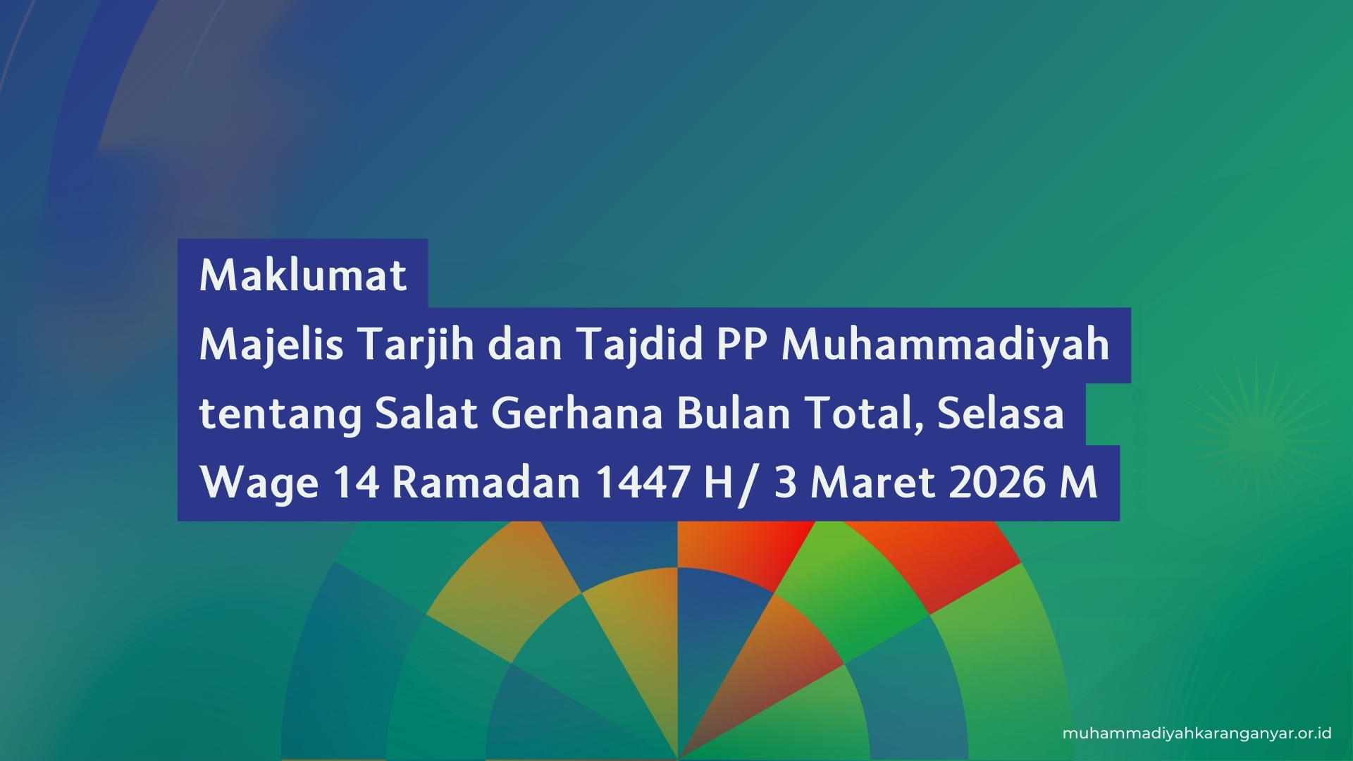 muhammadiyakaranganyar.or.id, Pimpinan Pusat (PP) Muhammadiyah melalui Majelis Tarjih dan Tajdid secara resmi mengeluarkan maklumat mengenai fenomena alam Gerhana Bulan Total yang diprediksi akan menyambangi langit Indonesia. Peristiwa astronomis ini diperkirakan jatuh pada Selasa Wage, 14 Ramadan 1447 Hijriah, atau bertepatan dengan tanggal 3 Maret 2026 Masehi.