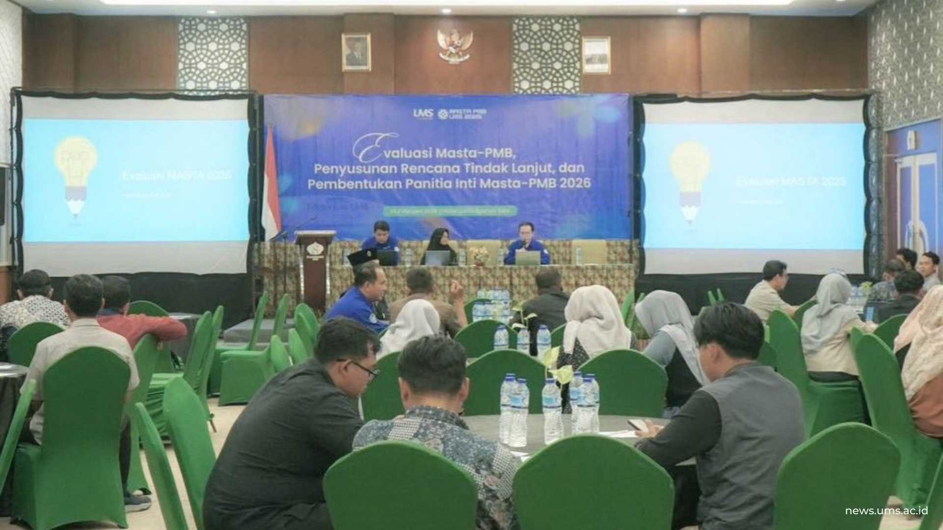muhammadiyahkaranganyar.or.id, SURAKARTA – Universitas Muhammadiyah Surakarta (UMS) menggelar Evaluasi Masa Ta’aruf dan Penyambutan Mahasiswa Baru (MASTA-PMB) 2025 yang dirangkai dengan penyusunan Rencana Tindak Lanjut (RTL) serta pembentukan Panitia Inti MASTA-PMB 2026 di Hotel Lorin Syariah Solo, Rabu (25/2).