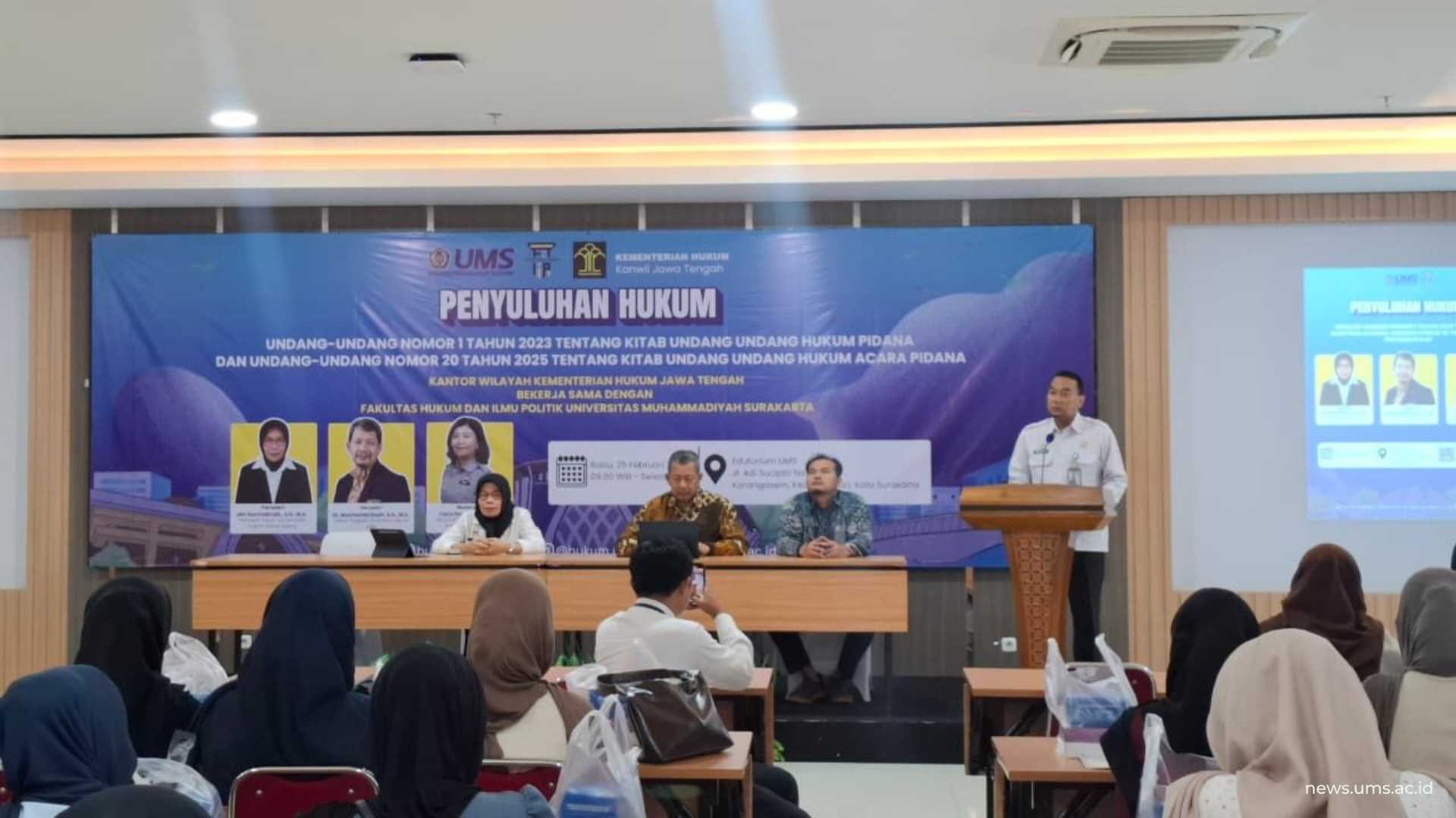 muhammadiyahkaranganyar.or.id, SURAKARTA – Universitas Muhammadiyah Surakarta (UMS) kembali menegaskan komitmennya sebagai kampus yang responsif terhadap dinamika hukum nasional melalui kolaborasi strategis bersama Kantor Wilayah Kementerian Hukum Jawa Tengah dalam Seminar dan Penyuluhan Hukum bertajuk “KUHP 2023 dan KUHAP 2025: Arah Baru Sistem Peradilan Pidana Indonesia.”