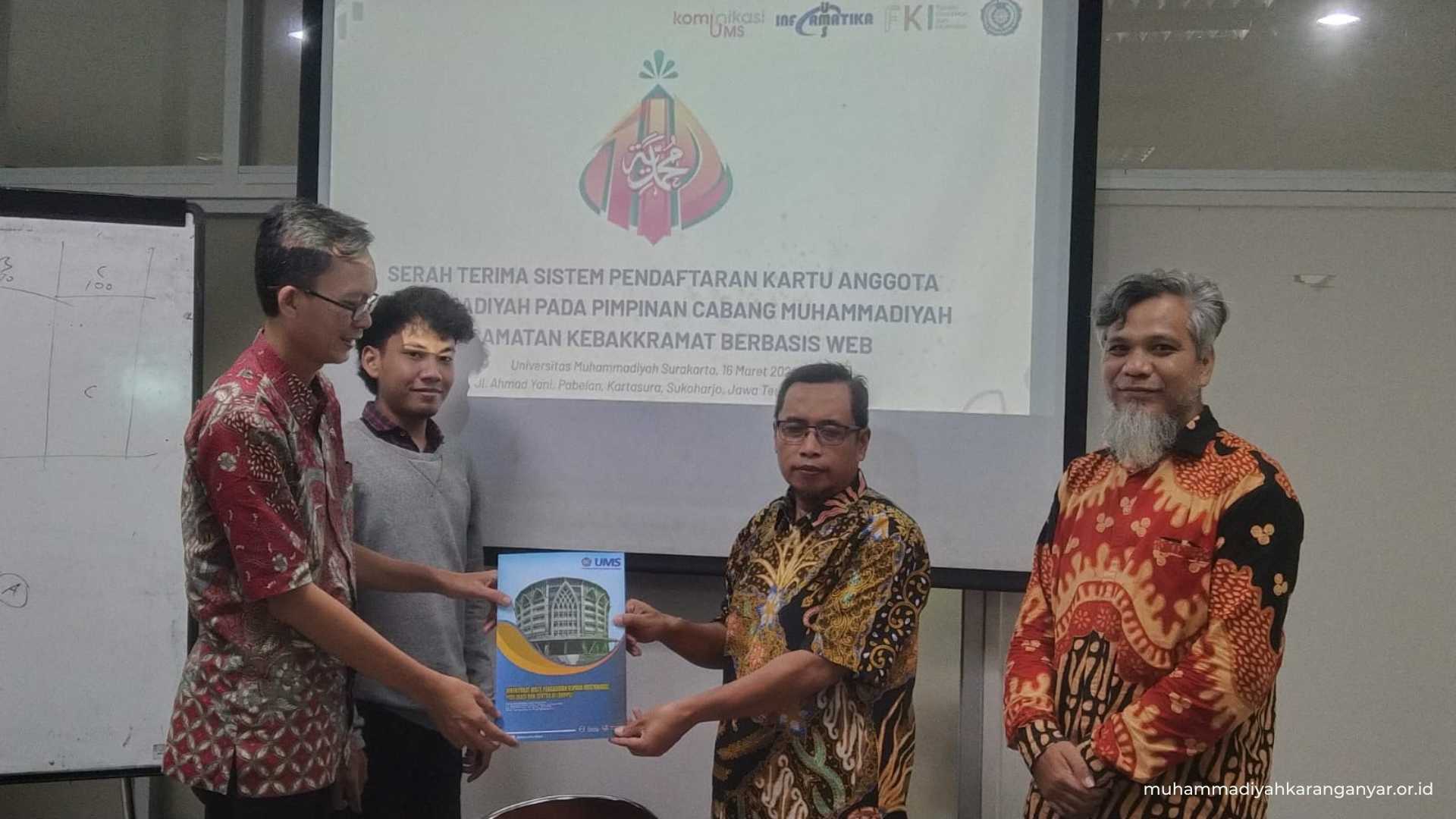 muhammadiyahkaranganyar.or.id, Kebakkramat – Pimpinan Cabang Muhammadiyah (PCM) Kebakkramat resmi memulai babak baru dalam pengelolaan organisasi digital. Langkah ini ditandai dengan serah terima Sistem Pendaftaran Kartu Anggota Muhammadiyah Berbasis Web dari Program Studi Informatika Universitas Muhammadiyah Surakarta (UMS) kepada jajaran pimpinan PCM Kebakkramat, Senin (16/3/2026).