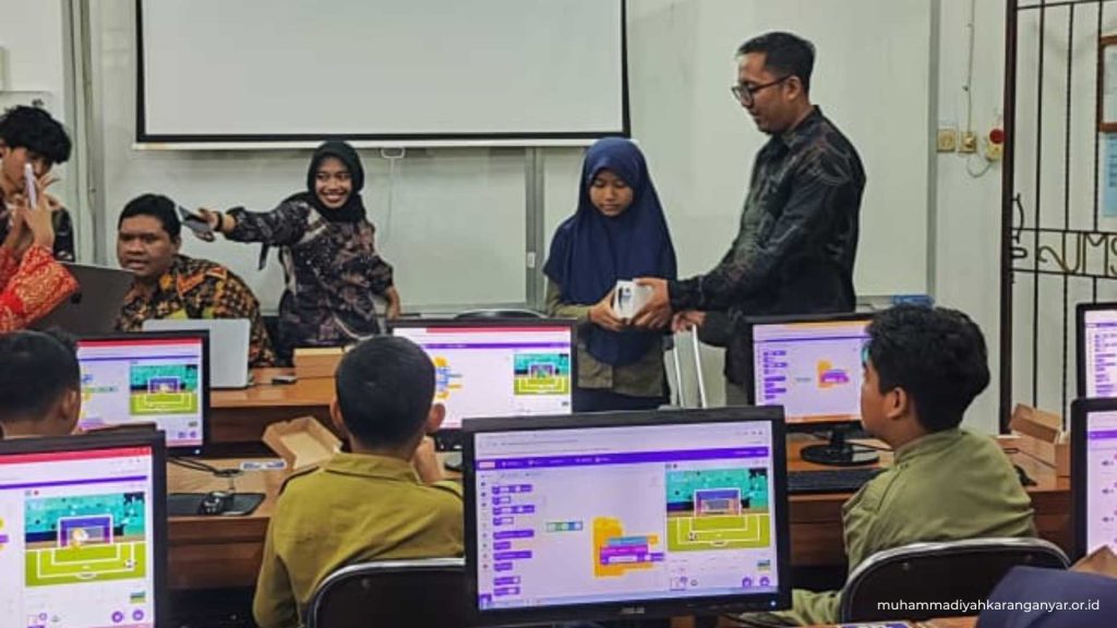 muhammadiyakaranganyar.or.id, SURAKARTA – Suasana di Fakultas Informatika Universitas Muhammadiyah Surakarta (UMS) tampak berbeda pada Jumat pagi, 17 April 2026. Ruang-ruang kelas yang biasanya diisi mahasiswa, kini riuh oleh suara antusiasme puluhan siswa sekolah dasar. Sebanyak 31 siswa kelas V SD Muhammadiyah Program Khusus (PK) Baturan, Colomadu, Karanganyar, hadir untuk mengikuti pelatihan dan pendampingan pembelajaran koding.